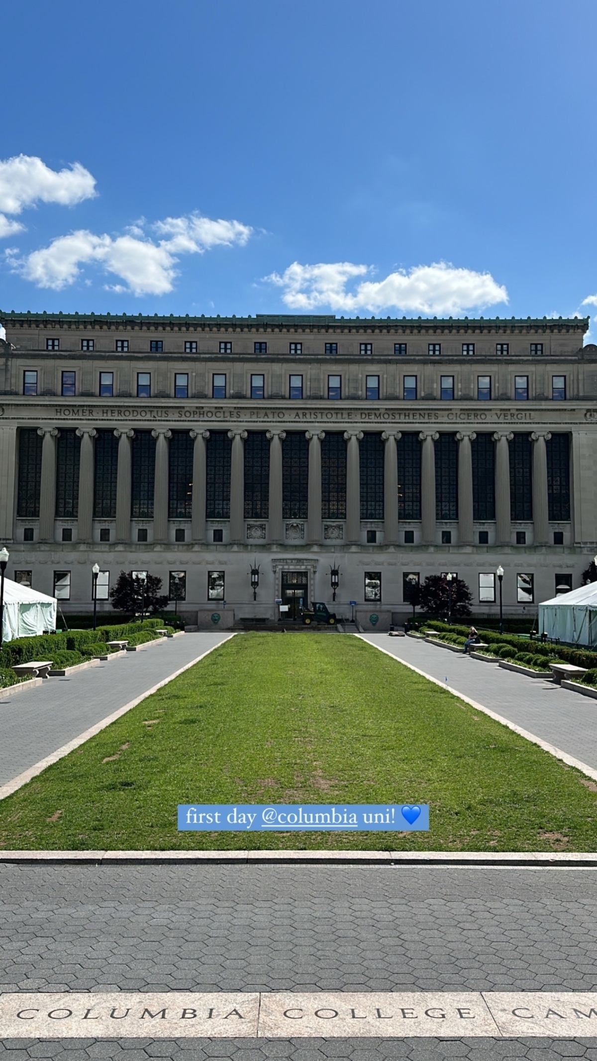 任晴佳在去年升讀英國倫敦大學,不時會分享自己留學生活,不過近日卻在IG分享了在紐約曼哈頓的哥倫比亞大學(Columbia University)圖書館大樓的照片,並以英文寫道︰「first day columbia uni!(在哥倫比亞大學的第一天)」令到網民猜測任晴佳已轉讀該校, 剛好琦琦也有在社交平台分享在美國打卡照片!