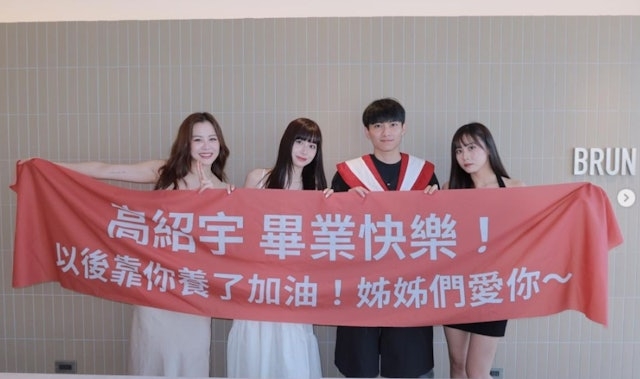 這名世新大學的男子因早前看到東海大學的男子有姊姊們製作紅布條慶祝畢業的新聞,然後向家人們抱怨,提到自己也想有同樣的畢業照片,因此姊姊們立即安排,製作出長度有300厘米的超長紅布條,並寫上「高紹宇畢業快樂!以後靠你養了加油!姊姊們愛你~」。隨後照片在網上瘋傳,三位姊姊的高顏值引起網民關注,其中兩名姊姊更被起底!