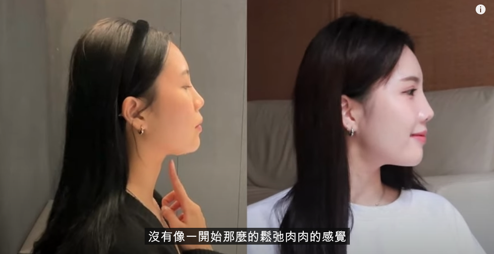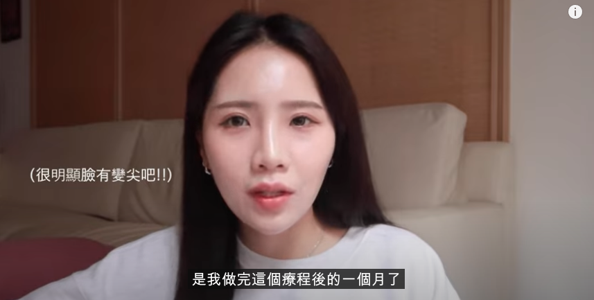 過了一個月後,明顯覺得臉有變尖,而原本比較大的咀嚼肌也消掉了,線條感有出來,沒有像一開始那種鬆弛肉肉的感覺,就連身邊好友都認同,對效果很滿意!