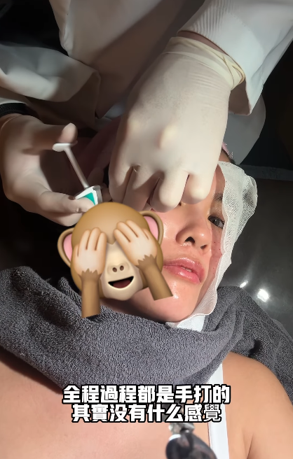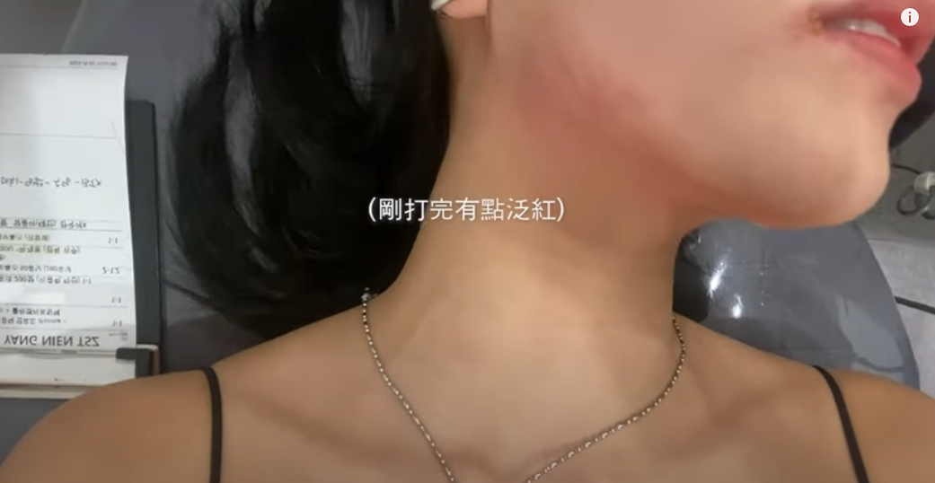 她表示全程都是手打,過程沒有什麼感覺,打完後會用保濕鎮定,而消紅腫是看個人狀況,她則是大約三天內會消腫。