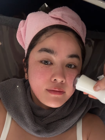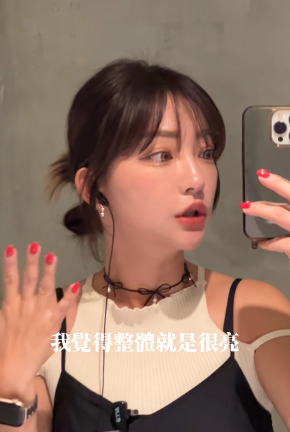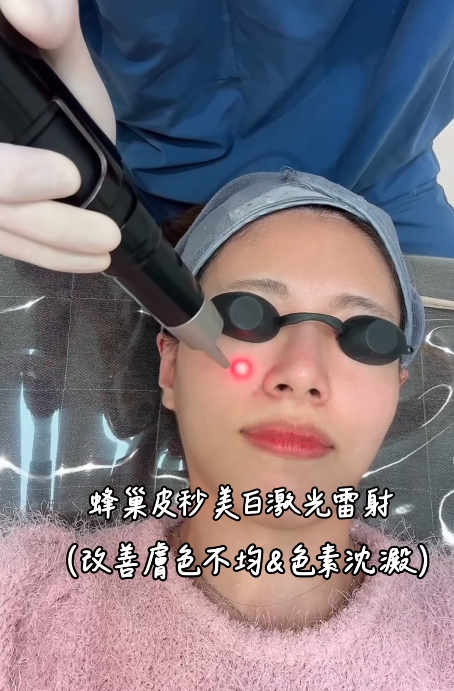 她曾體驗蜂巢皮秒美白激光雷射、翠綠激光Excel x、LDM保濕管理,台幣四千有找。其中蜂巢皮秒美白激光雷射有效改善膚色不均和色素沉澱。