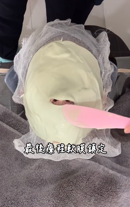 第二部分是V Shrink音波拉提,先敷麻藥,操作時會有酸酸麻麻的感覺,之後再敷上面膜。