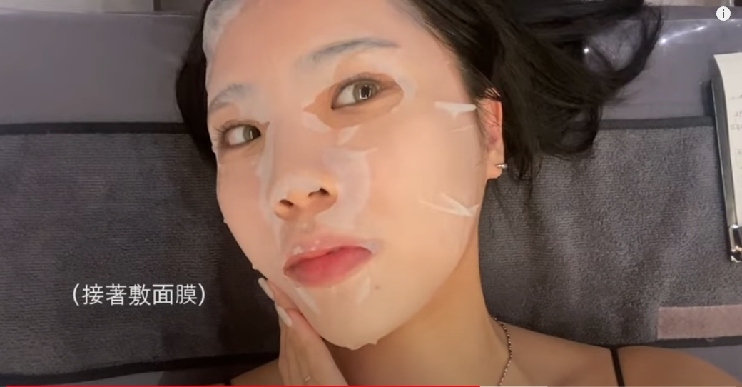 第三階段是面膜,完全服貼在臉上,直到隱形,躺30分鐘就完成了,最後還會塗上乳液和防曬。