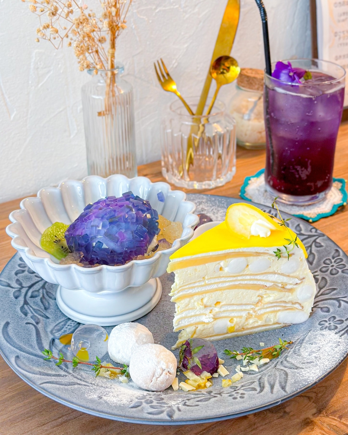 位於神戶市的Cafe Luire在今年2月才剛剛開幕,Cafe主要售賣水果千層蛋糕,忌廉香甜又滑,草莓季的一系列甜品的外型超吸睛,擺盤又好適合打卡,曾經掀起一陣熱潮。近日它們因應繡球花花季,自製了繡球花果凍杯,再配上口味清新的檸檬千層蛋糕,意外地夾呢!