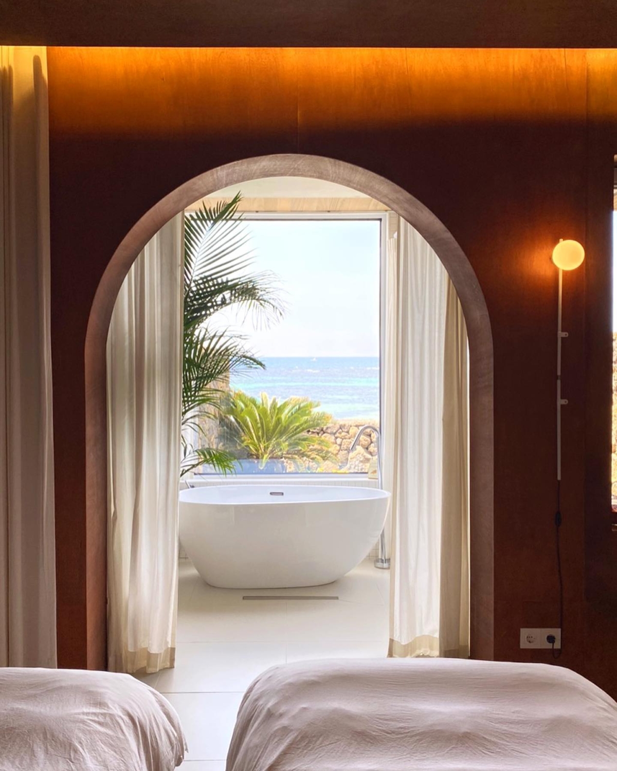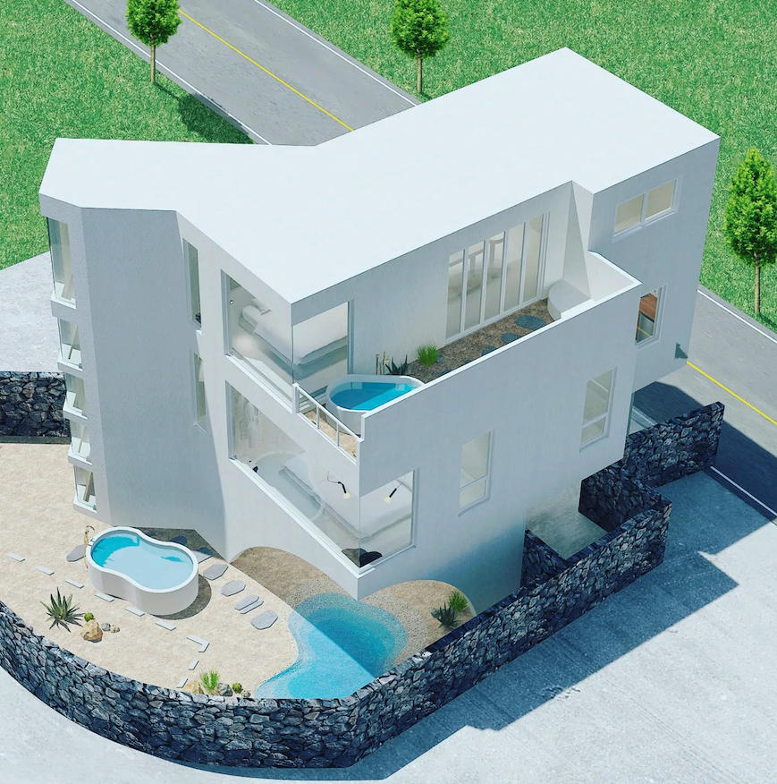 這間位於濟州島舊左邑的民宿「Hi Gimnyeonga」建築以純白色為主,所有房型都設有浴缸,大家可以一邊浸浴一邊看著海景,而且又有露台給住客,能夠拍出咖啡店的感覺~