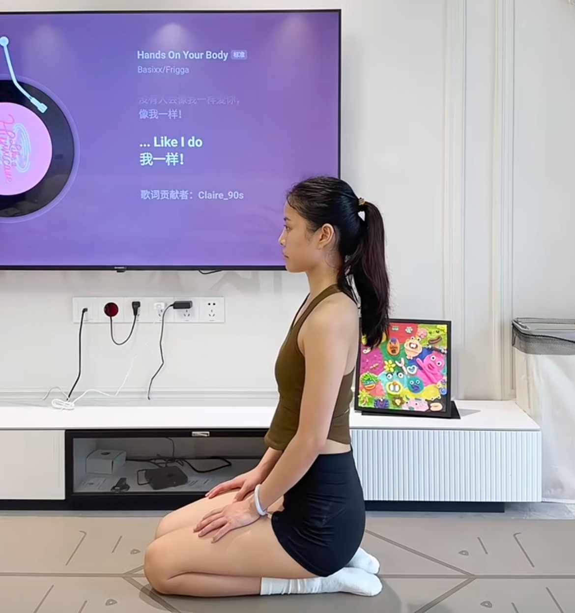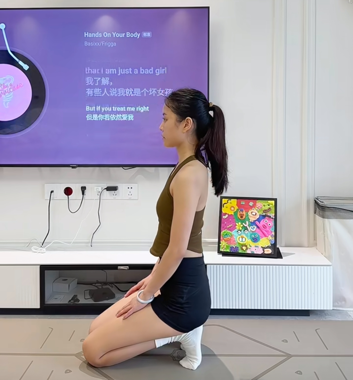跪坐地上,腳背貼地,雙手放在大腿上。腰背挺直,使腳背受到壓力並感到拉伸,維持這個姿勢30秒,這個動作可以有效放鬆小腿後側肌肉,預防腿部僵硬。