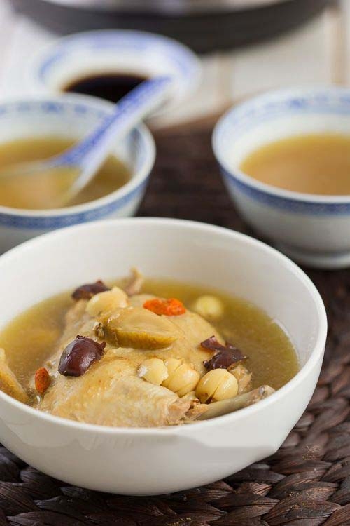 做法:將老母雞洗淨切塊,花椒、紅棗和枸杞洗淨,將雞肉和所有材料放入鍋中,加水煮沸後轉小火燉煮1小時,即可。