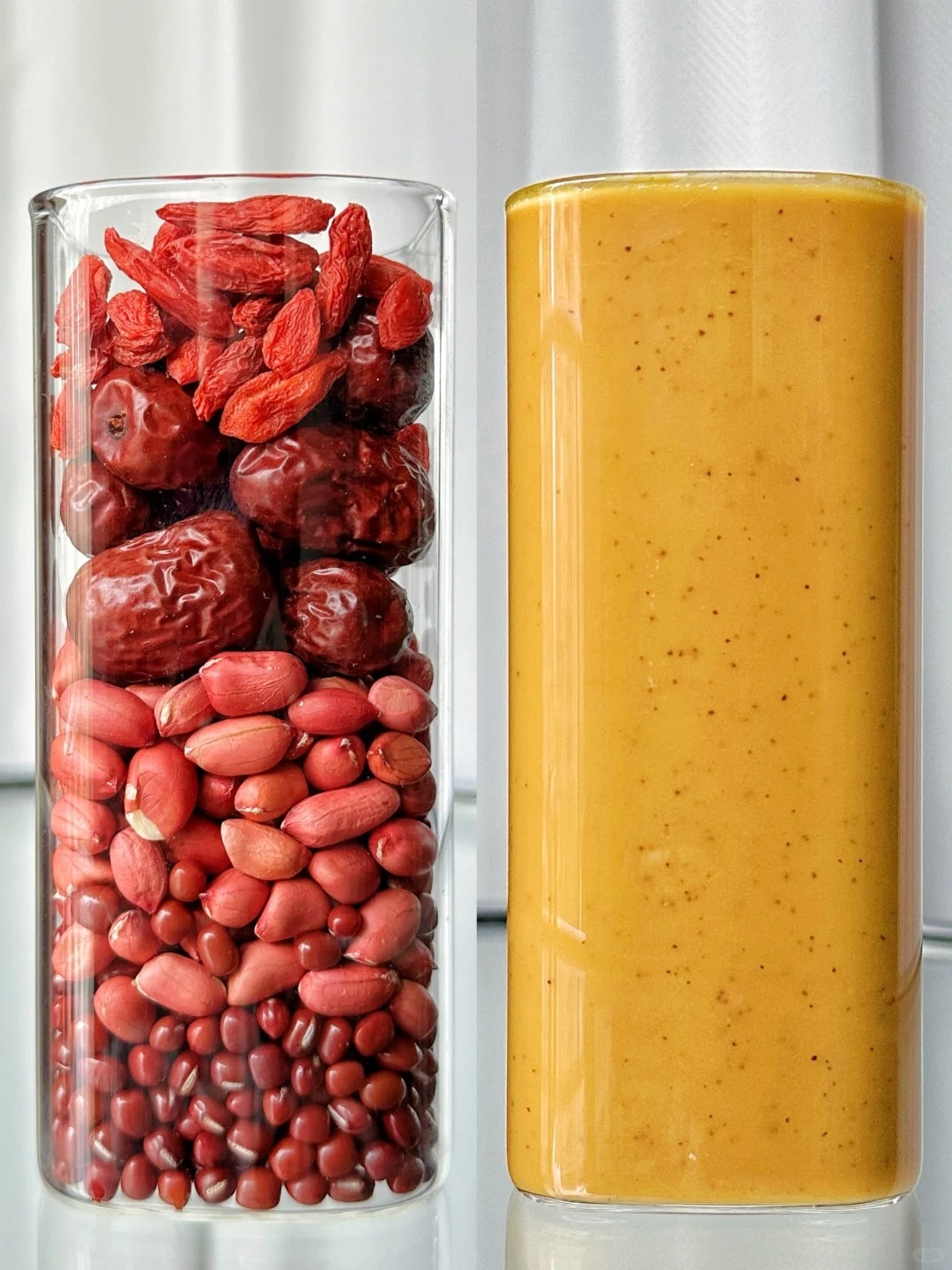 這款飲品有助補血養顏,尤其適合女性朋友飲用。紅豆具有消腫和利尿作用,花生富含蛋白質和維生素E,有助於滋潤皮膚;紅棗能補血安神,枸杞則有抗氧化功效。