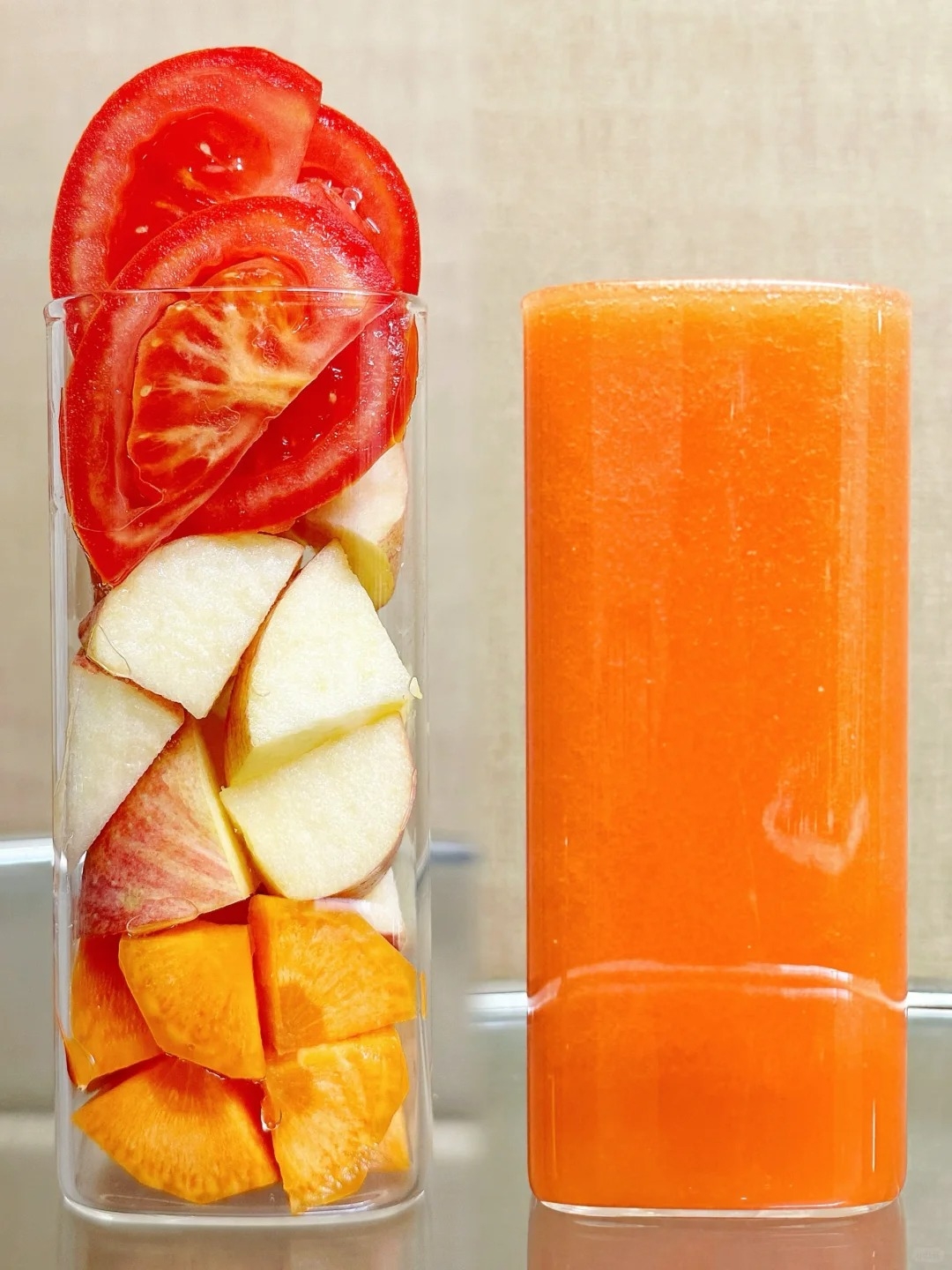 食材:蘋果半個、番茄半個、胡蘿蔔1小節、枸杞幾顆