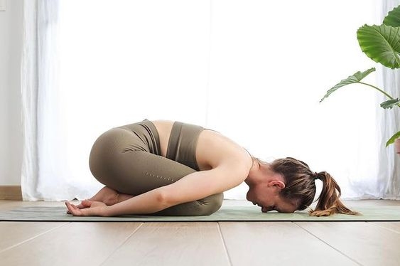 嬰兒式可以舒緩疼痛感,先坐在腳後跟上,呈跪姿準備動作,然後上半身緩緩向前傾,直到腹部及胸口貼到大腿前側,手臂可以自然垂放兩側或向前伸。