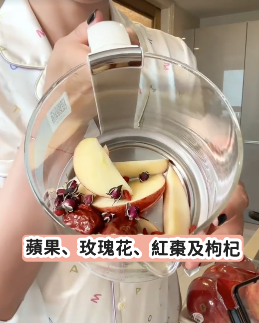 這款玫瑰蘋果水可以幫助女生補氣血,調理脾胃,有助於體內廢物排出,加入玫瑰花更可以美容養顏,改善面黃、便秘問題,經常捱夜的女生必飲~