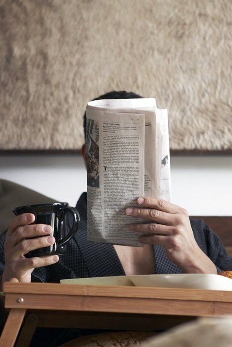 題目:在晴朗的天氣中,一名男子站在一座很高的建築物下面閱讀報紙。當他看到一條新聞後,他突然跑到建築物的頂層,打開燈,隨後跳下去自殺了。請問發生了什麼事?