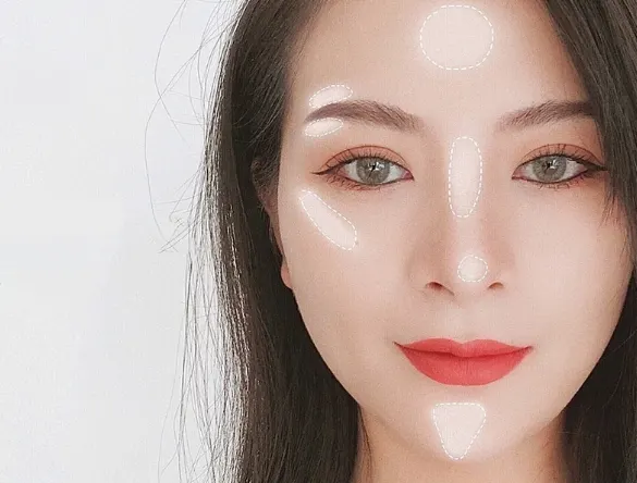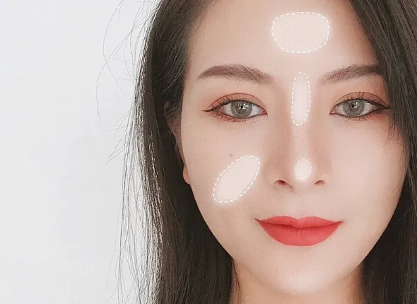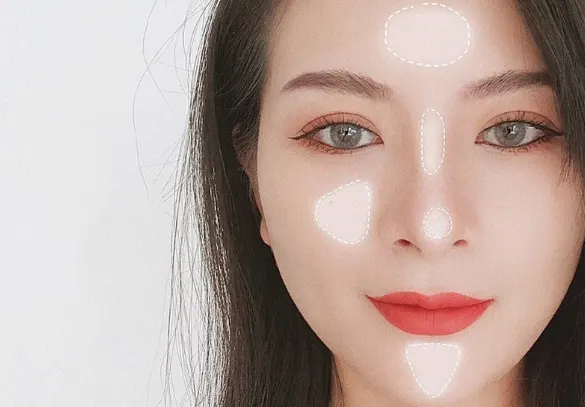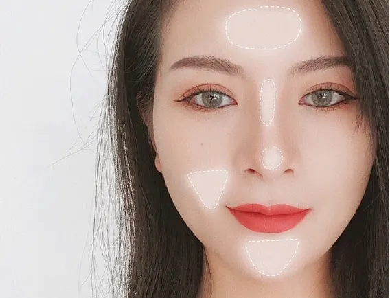 一般來說,打亮的位置通常位在眉骨、顴骨、鼻頭、人中及下巴處,是臉部轉動時最容易被光照耀、反射光澤的地方。