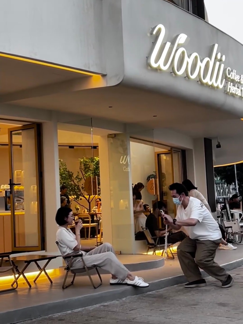 而另一張相,陳茵媺坐在一個矮凳仔繼續優雅地嘆咖啡,而陳豪同樣用盡心思為妻子拍下完美照片,因擔心高炒,他索性蹲在街頭,專心致志地取景,即便戴著口罩,他眼神中的愛意和專注仍然清晰可見,讓人不禁被這份深情所感動。陳豪這個充滿愛意的小舉動,不僅僅是一個簡單的拍照行為,也體現了他對妻子的悉心呵護,兩人互動自然又甜蜜!