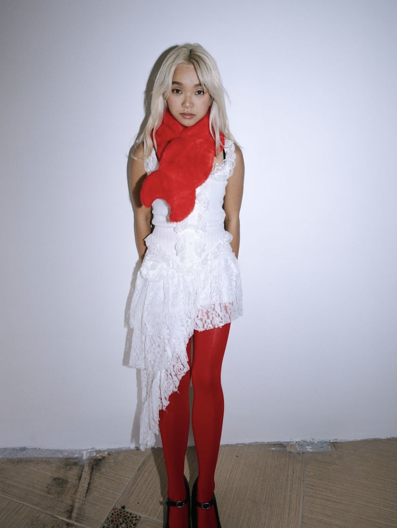 去年憑飛毛腿成功成為焦點的Moon Tang,今年決定蓋起美腿,穿上白色吊帶蕾絲裙配上紅色頸巾以及紅絲襪示人,極為搶眼!