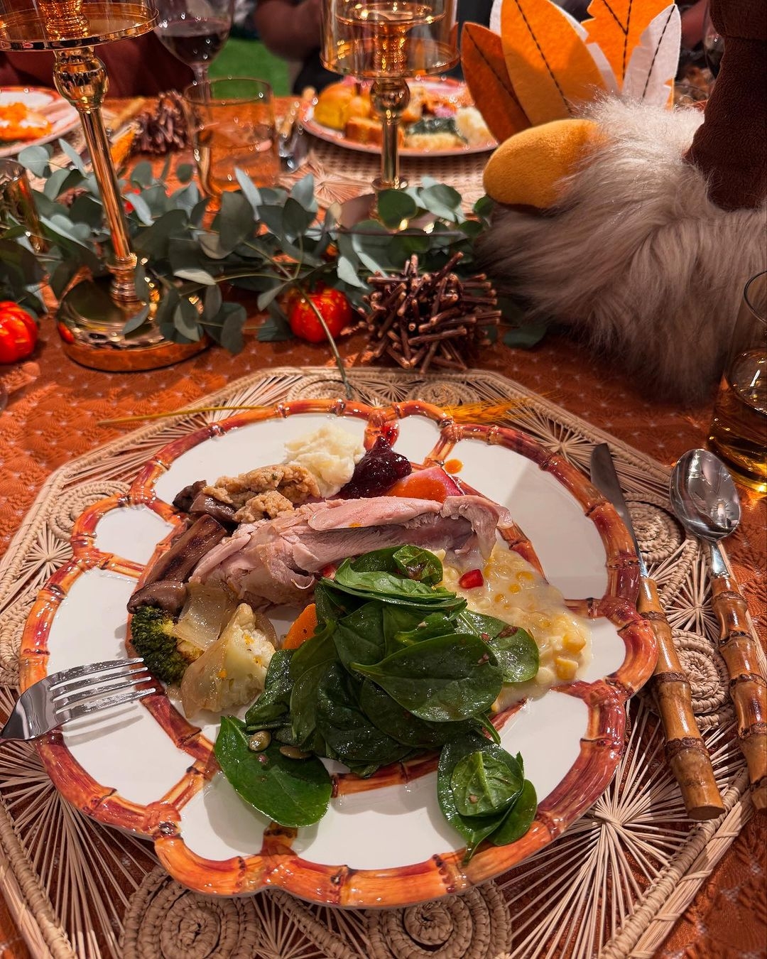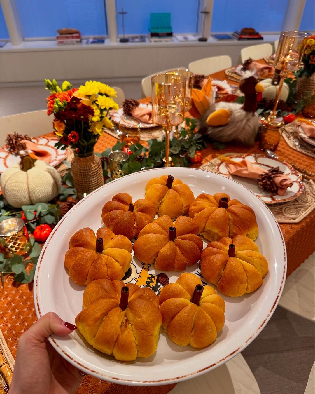 從上載的照片中可以看到,飯廳中擺放了一張可容納16人的長餐桌,桌面裝飾著許多鮮花和南瓜造型的裝飾品,使整個空間充滿了節日的氛圍,而精緻的餐具和細緻的佈置更顯示出林恬兒在準備這次聚會時的用心,以及對於這群老友的重視。