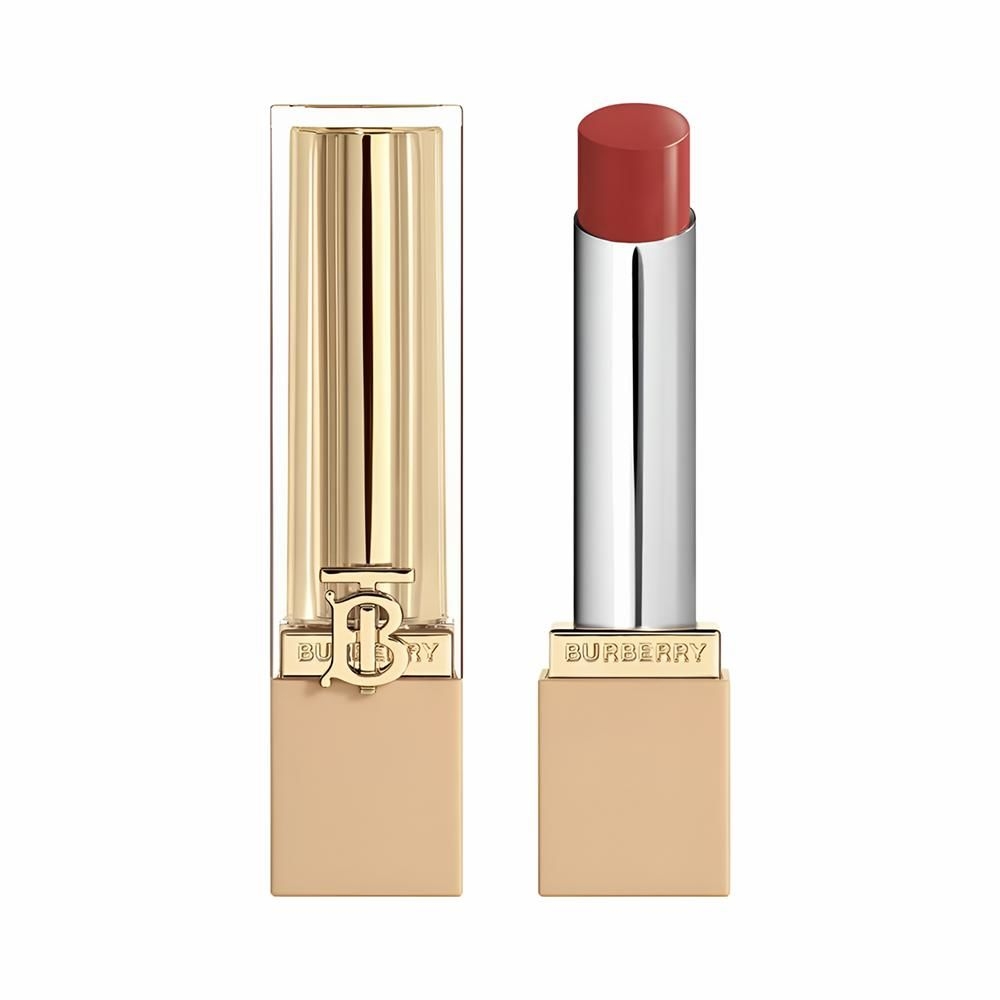 Burberry的水漾唇膏質地輕盈,能即刻為雙唇注入水分,提供7小時的持久保濕效果。它的質地絲滑不黏膩,輕鬆塗抹,還有一股玫瑰花香,帶著些許水果和綠葉香氣,讓化妝過程也變得療癒。#604水漾裸茶是大熱色號,非常適合黃皮膚,帶點棕橘調的裸色,無論是厚塗還是薄塗,都能打造出自然的透亮感,讓你的素顏也能立刻顯得有氣色。