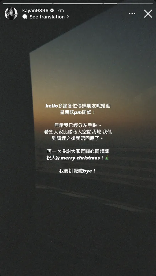 日前Kayan9896在IG宣布與「百億富三代」馬桂烽已分手,她寫上:「hello多謝各位傳媒朋友呢幾個星期既pm問候!無錯我已經分左手啦~希望大家比啲私人空間我地 我係到講埋之後就唔回應了。再一次多謝大家嘅關心同體諒祝大家merry christmas !我要訓覺啦bye!」,而男方的媽媽「Ball后」薛芷倫亦被發現已刪除早前一同慶祝母親節的大合照。