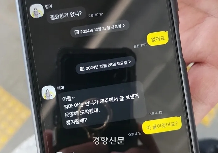 另外一位22歲的金先生與15歲弟弟本來在務安機場等待媽媽抵達,他透露自己50多歲的母親抗癌1年多,因為最近健康狀況有好轉而與朋友們去泰國旅行,媽媽最後還傳訊問他「需要什麼嗎?」,並叫他把家裡的包裹整理好,怎料卻發生憾事。