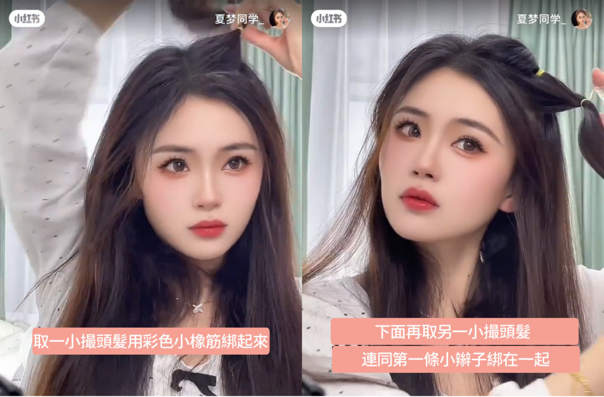 不妨參考一下美妝博主—夏夢同學_ 的教學,一起綁這個活力蓬鬆披肩髮,顯臉細又不失氣質!