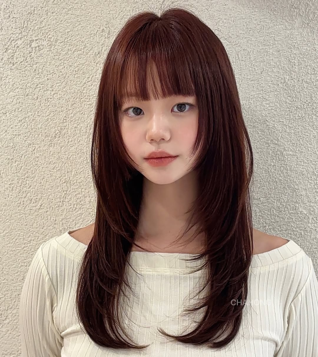 (G)I-DLE的雨琦以高層次公主切配以長直髮,頭髮看上去非常順滑又貼服,亦增添了一點女人味~而且兩側充滿層次感的頭髮,亦可以完美修飾臉型,𣊬間有瘦臉的效果!