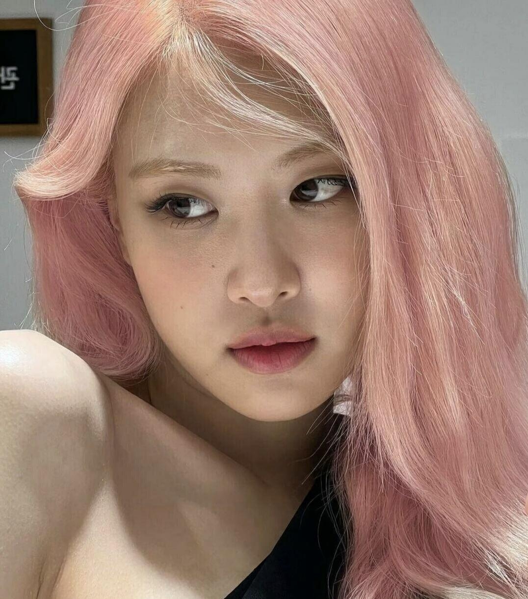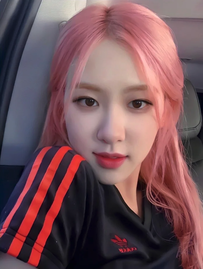 Rosé 一頭夢幻般的粉色長捲髮,散發著迷人的魅力,她的髮色並非鮮豔的桃粉,而是帶有一絲柔和的玫瑰色調,在光線的映照下,更顯得溫婉動人。髮絲自然地披散在肩上,營造出一種隨性而優雅的氛圍。髮絲間流動著溫柔的光澤,與她白皙的肌膚相互映襯,搭配簡約的妝容和休閒的服飾,更凸顯了她精緻的五官和獨特的氣質。