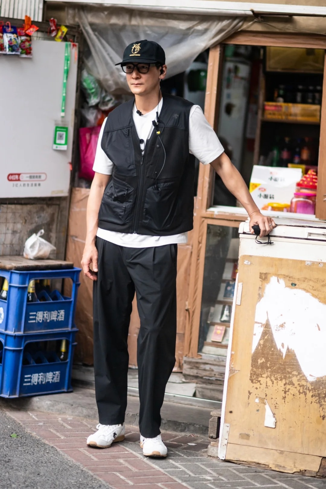 當天,吳彥祖一身簡潔隨性的裝扮,白色T恤搭配黑色馬甲,頭戴黑色帽子,再配上一副黑框眼鏡和口罩,將自己隱匿於人群之中。正是這身樸素的裝扮,使他在街頭顯得並不那麼引人注目,以至於許多路人面對他的攝影邀約,反應都顯得有些遲疑。