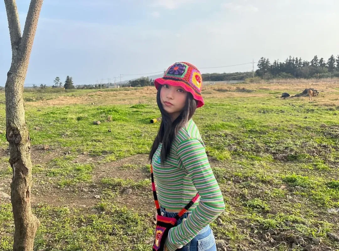 想要掌握 Z 世代最火紅的多巴胺穿搭,NewJeans 的 Haerin 絕對是最佳範本。她完美駕馭了「復古童趣風 (Kitschy & Crafty)」與「活力球衣風 」兩種截然不同的面向,打破單純追求高飽和色的框架,展現出圖騰與材質碰撞的高級趣味。在復古造型中,Haerin 聚焦於手工感強烈的鉤針單品,透過繽紛的拼接漁夫帽呼應綠色條紋上衣,營造出活潑又帶點田園氣息的層次感;而切換到運動風格時,她則大膽選用高飽和度的寶藍色棒球衣,利用衣身上的粉色櫻花圖案巧妙中和陽剛味,再搭配細節滿滿的白色愛心塗鴉報童帽,為整體注入一絲甜美與酷帥。無論是運用可愛元素的堆疊,還是精緻的運動混搭,Haerin 都精準詮釋了「豐富的多巴胺色彩」。